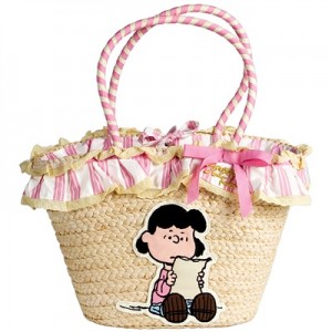 E’ proposta dal brand Fixdesign questa borsa.Si tratta di una Cesta realizzata in paglia con bordo di ruches e applicazione cartoon di Lucy.Capiente e pratica è l’ideale per il giorno e si abbina ad un abbigliamento casual.