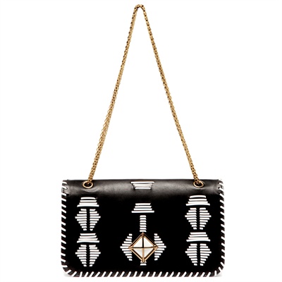Per chi ama le borse a spalla il brand propone la Piccola borsa realizzata in pelle nera con tracollina in metallo dorato. Si può sfoggiare la sera con un abito in tinta ed accessori dorati che riprendono la tracollina della borsa.