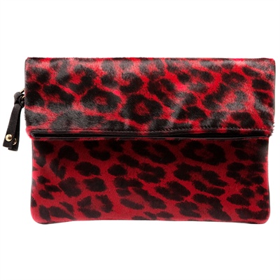 Per la sera è perfetta la Pochette realizzata in cavallino maculato, si indossa sul nero o sul rosso.